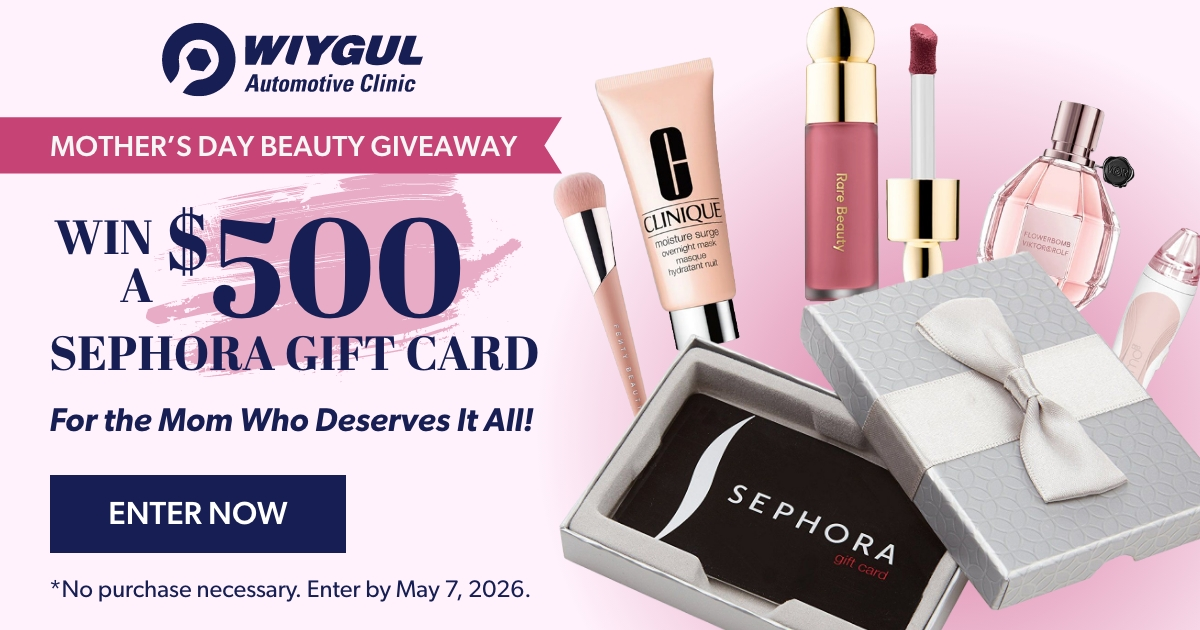 This Mother’s Day, Wiygul Automotive Clinic is giving one lucky winner a $500 Sephora Gift Card to spend on all the luxury skincare, fragrances, and glam they can carry.